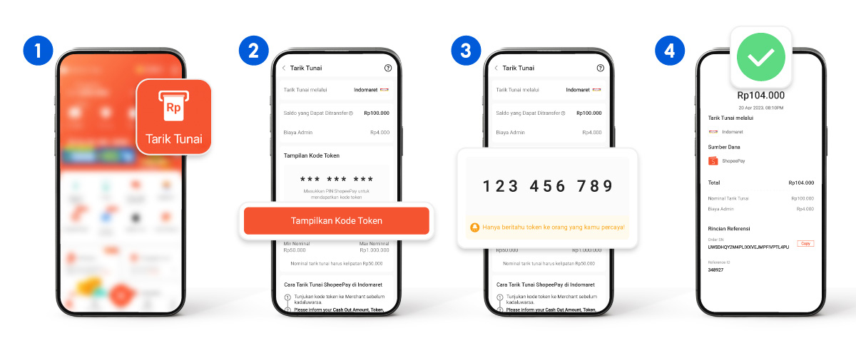 Cukup gunakan aplikasi ShopeePay dan ikuti beberapa langkah mudah untuk menarik uang tunai dengan mudah di semua gerai Indomaret! Untuk setiap transaksi tarik tunai ShopeePay, hanya dikenakan biaya admin sebesar Rp4.000, sehingga menjadi pilihan yang hemat biaya untuk mendapatkan uang tunai saat dibutuhkan.