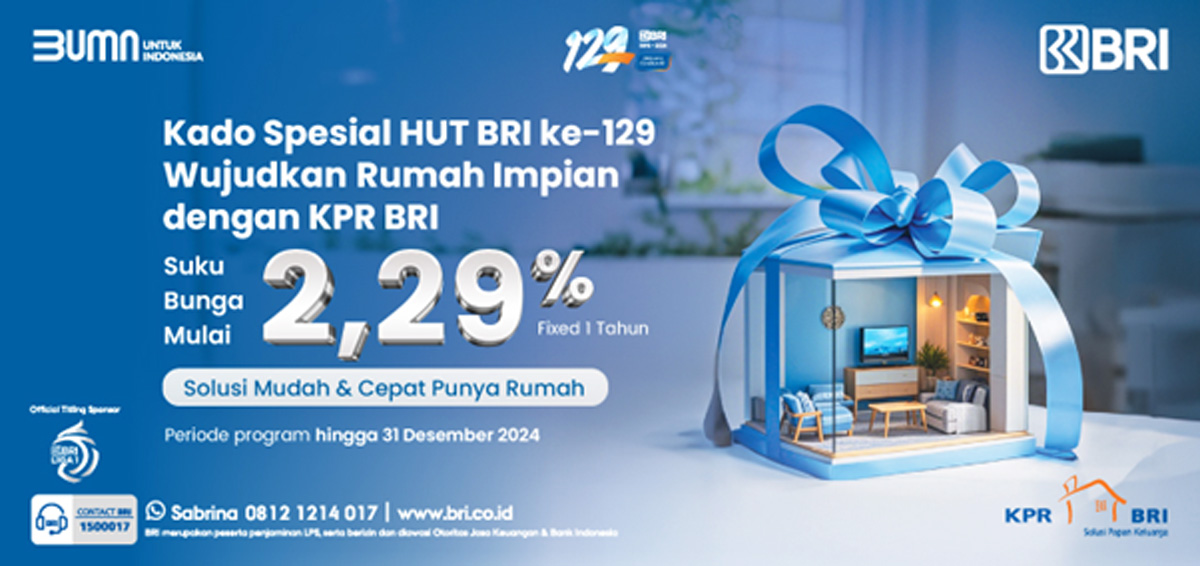 JawaPos.com - PT Bank Rakyat Indonesia (Persero) Tbk atau BRI menghadirkan Program Spesial KPR BRI. Ini merupakan promo spesial dalam rangka memperingati HUT BRI yang ke-129.