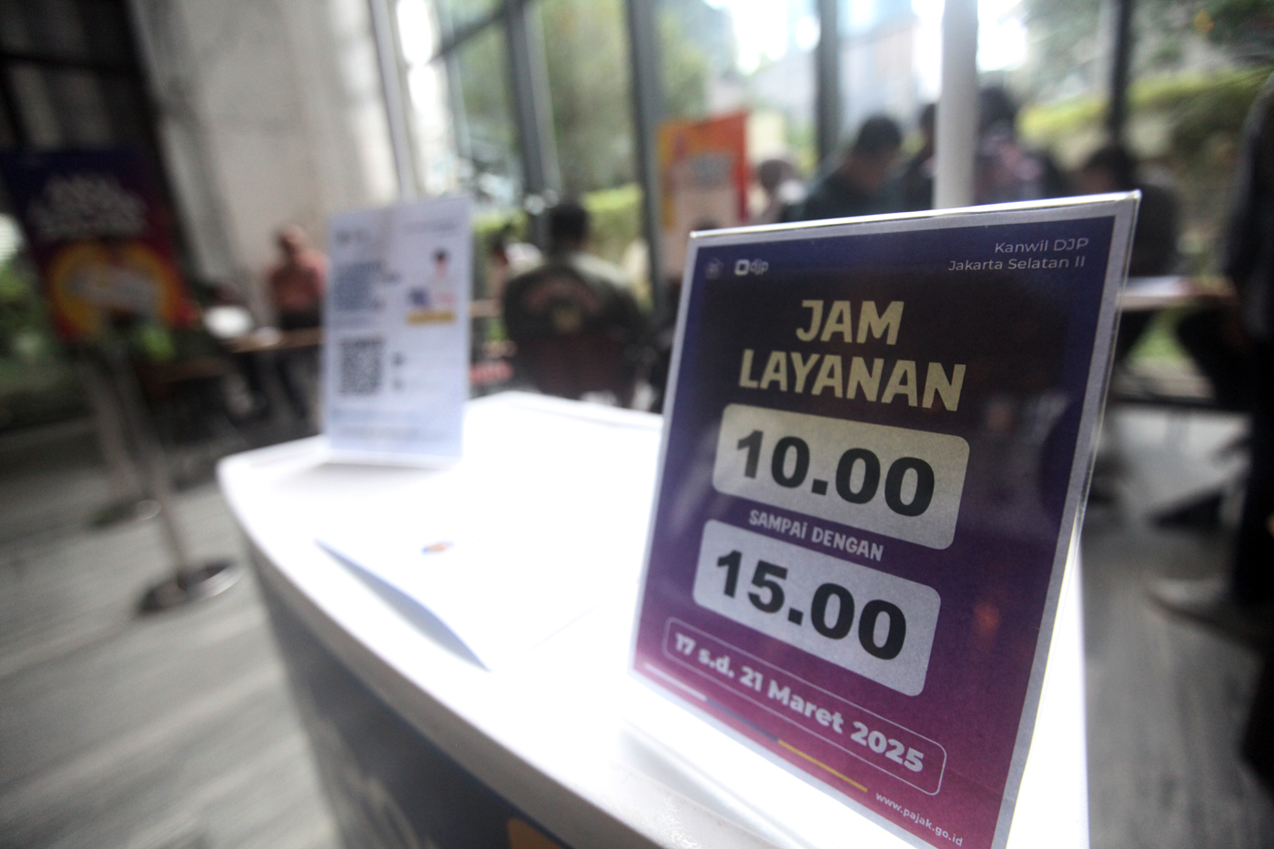 Aktivitas wajib pajak melakukan lapor pajak pribadi dan Surat Pemberitahuan Tahunan (SPT) di Gerai Pojok Pajak, ASHTA District 8, Jakarta, Rabu (19/3/2025). (Dery Ridwansah/ JawaPos)