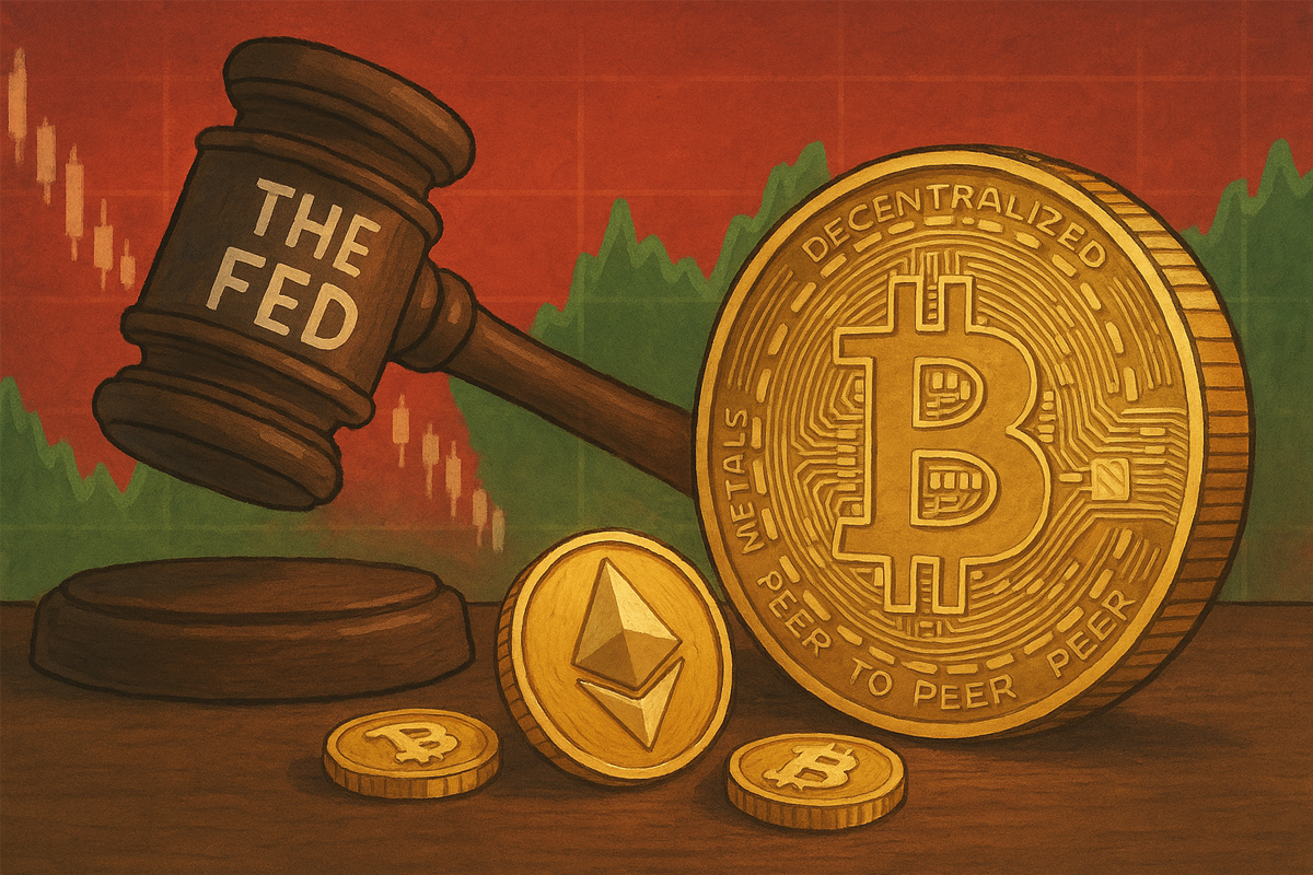 Ilustrasi kebijakan The Fed yang mempengaruhi pasar kripto. (Dhimas Ginanjar/Dall E/JawaPos.com)