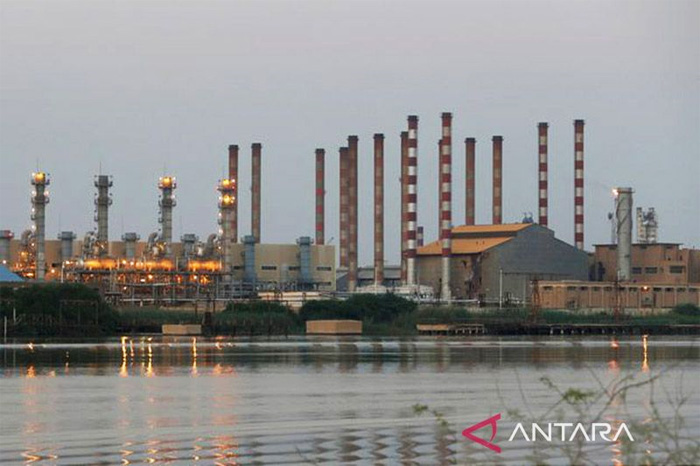 Kilang minyak Abadan di Iran barat daya, digambarkan dari sisi Irak Shatt al-Arab di Al-Faw selatan Basra, Irak, Sabtu (21/9/2019). ANTARA/REUTERS