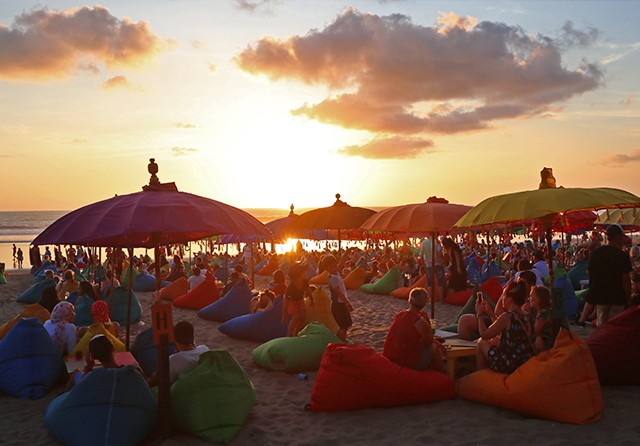 POTENSI BESAR: Wisatawan menikmati sunset di Pantai Seminyak, Bali. Wisata dan perjalanan termasuk lima sektor ekonomi digital yang tumbuh pesat. (Ahmad Khusaini/Jawa Pos)
