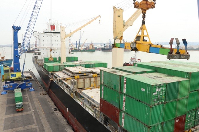 Suasana bongkar muat peti kemas di Dermaga Nilam Tanjung Perak Surabaya. Frizal/Jawa Pos