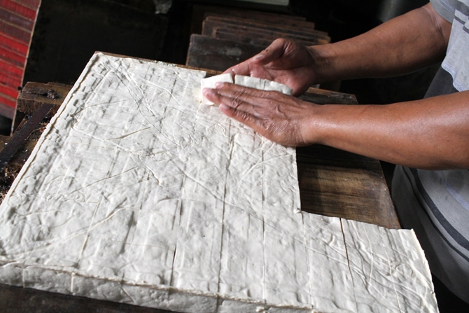 Pekerja membuat tahu di Duren Tiga, Jakarta, Minggu (3/1/2021). (Dery Ridwansah/JawaPos.com)