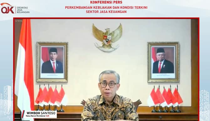 JAGA STABILITAS: Ketua Dewan Komisioner OJK Wimboh Santoso dalam konferensi pers Perkembangan Kebijakan dan Kondisi Terkini Sektor Jasa Keuangan.