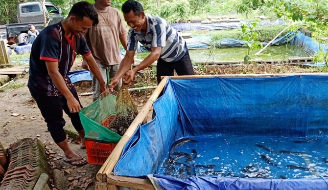 Ilustrasi aktivitas warga dalam pengembangan budidaya ikan Lele di Desa Kalitekuk, Kapanewon (Kecamatan) Semin, Kabupaten Gunungkidul, Provinsi Daerah Istimewa Yogyakarta.