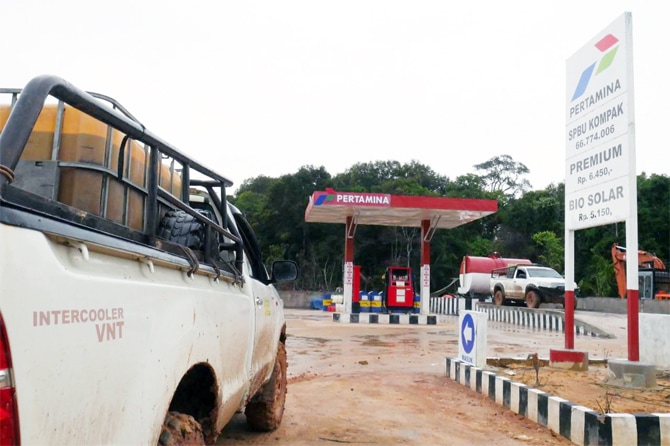 Salah satu SPBU di daerah terpencil. PT Pertamina hingga kini telah melaksanakan amanah pemerintah dengan mengoperasikan sebanyak 243 titik BBM Satu Harga yang tersebar di seluruh Indonesia.