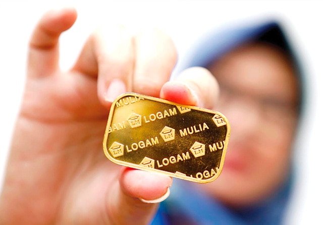MUDAH DIJUAL: Logam mulia memiliki spesifikasi Fine Gold 999.9. Emas batangan produk PT Antam menjadi salah satu yang disarankan sebagai instrumen investasi. (Puguh Sujiatmiko/Jawa Pos)