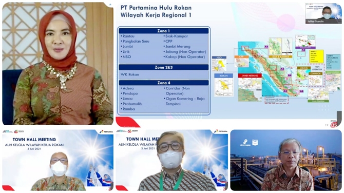 JawaPos.com – Menjelang alih kelola Blok Rokan dari PT Chevron Pacific Indonesia (CPI) ke Pertamina Hulu Rokan (PHR) pada 9 Agustus 2021 mendatang, Pertamina gelar diskusi secara daring dalam bentuk Townhall Meeting dengan seluruh pekerja CPI pada Kamis (03/06).
