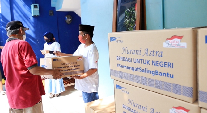 Secara bertahap, Astra terus menyalurkan bantuan berupa paket bahan makanan pokok ke 34 provinsi di seluruh Indonesia, yang dibantu oleh Grup Astra melalui 31 Koordinator Wilayah Grup Astra dan berbagai Komunitas Astra yang terdiri dari penggerak Kampung Berseri Astra dan Desa Sejahtera Astra, penerima apresiasi SATU Indonesia Awards serta Yayasan Amaliah Astra.
