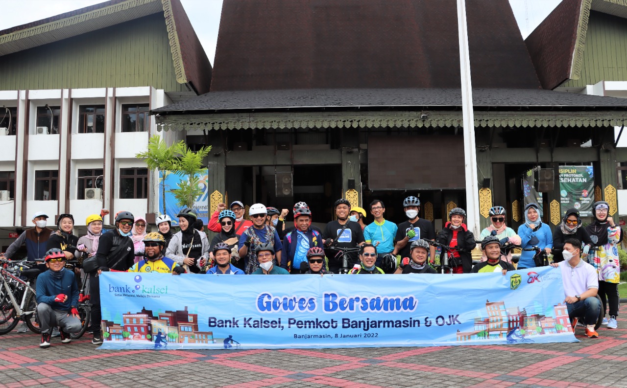 JawaPos.com - Bank Kalsel menggelar kegiatan gowes alias bersepeda bersama dengan mengajak Jajaran Pemerintah Kota (Pemkot) Banjarmasin dan Otoritas Jasa Keuangan (OJK) Regional 9 Kalimantan. Para pesepeda terdiri dari beberapa pegawai Bank Kalsel Kantor Pusat dan Cabang Utama, anggota komunitas sepeda di lingkungan Pemko Banjarmasin dan anggota komunitas sepeda OJK.
