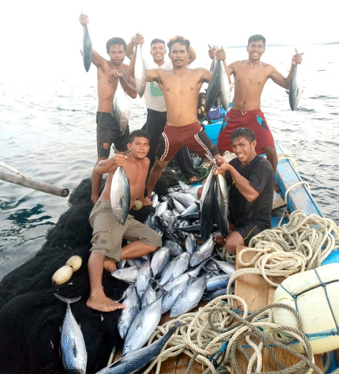 “Dari dulu, tahun 80-an saya sudah menangkap ikan dengan orangtua. Waktu itu menangkap ikan masih menggunakan perahu dayung. Biasanya kita tangkap ikan pelagis seperti ikan cakalang, tongkol, julung-julung, ikan sohiri dan sebagainya,” tutur Oskar, salah satu nelayan di Halmahera Utara, Maluku Utara.