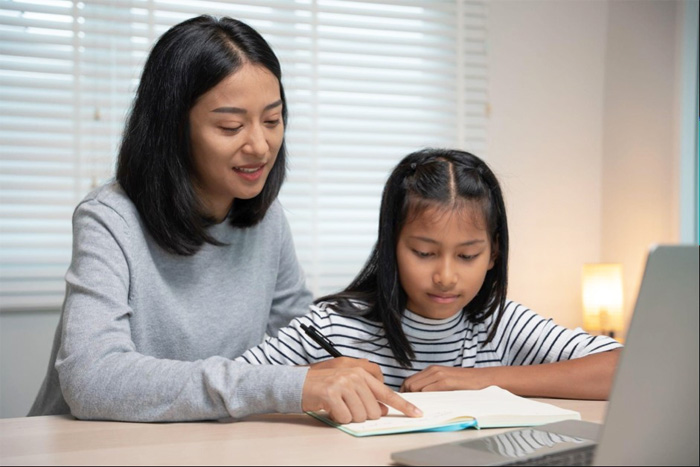 Ilustrasi seorang ibu tengah mengajari anaknya. Kebiasaan menabung penting untuk ditanamkan sedari dini. Untuk membiasakan menabung, orang tua bisa membuka Tabungan BRI Junio untuk si kecil di BRImo.