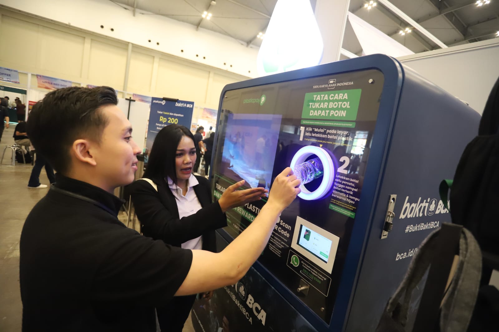 Tak kalah menarik, komitmen BCA menghadirkan acara yang ramah lingkungan juga terlihat dari keberadaan Reverse Vending Machine (RVM), atau mesin penukaran botol Bakti BCA di area BCA Expo. RVM tersebut tersedia untuk memfasilitasi pengunjung yang hendak menukarkan sampah botol plastik yang bisa ditukarkan dengan hadiah menarik. Keberadaan RVM tersebut adalah hasil kerja sama Bakti BCA dengan Plasticpay.