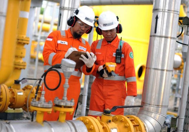 Pegawai PGN tengah melakukan pengecekan distribusi jaringan gas. (PGN for JawaPos.com)