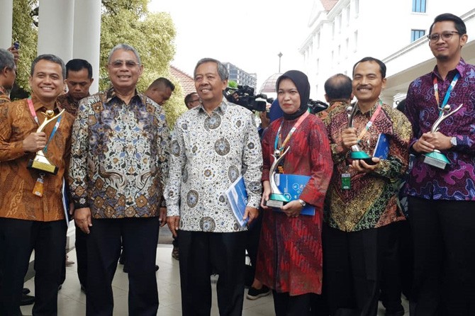 Jajaran manajemen PT Pertamina Gas (Pertagas), anak usaha PT Perusahaan Gas Negara Tbk usai menerima predikat Emas dalam ajang PROPER yang diselenggarakan Kementerian Lingkungan Hidup dan Kehutanan (KLHK) yang diserahkan Wakil Presiden Prof Dr KH Ma