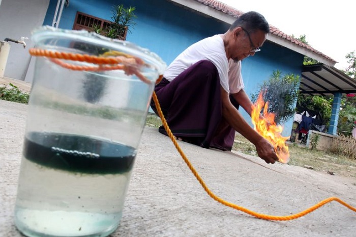 Sumur warga di Desa Pengasinan, Gunung Sindur, Kabupaten Bogor, Jawa Barat yang diduga tercemar oleh bahan bakar minyak (BBM) jenis Pertalite.