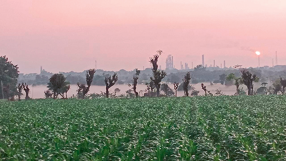 BERKABUT: Gas dari TBBM Pertamina Tuban menutupi pepohonan sekitar permukiman warga.