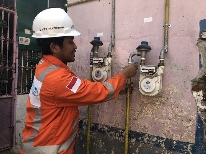 Salah satu petugas PGN tengah memeriksa instalasi jaringan gas di Kota Pasuruan, Jawa Timur. (PGN
