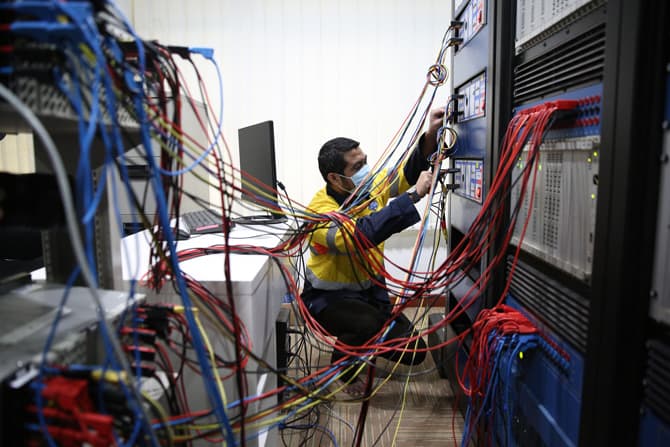Petugas melakukan pengecekan atau quality control di Kantor PLN Pusat Sertifikasi (Pusertif) Duren Tiga, Jakarta, Rabu (22/7/2020). PLN Pusertif melakukan pengujian terhadap instalasi kelistrikan, kWh meter, dan seluruh peralatan listrik sesuai standar ya