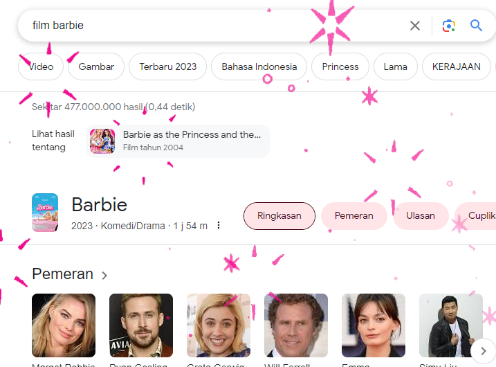 Efek setelah mengetik film Barbie di Google (tangkapan layar)