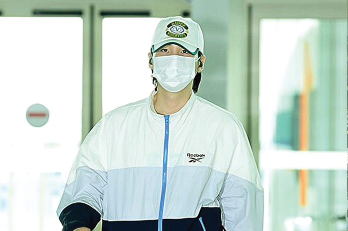 BeRanGKat Ke JaKaRta: agust D alias Suga BtS di Bandara incheon, Korea, pada Rabu (24/5).