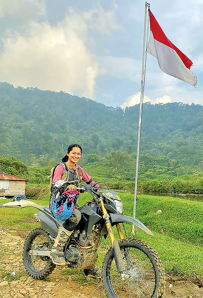 TANTANGAN YANG MENYENANGKAN: Bagi Prisia Nasution, naik motor trail di alam terbuka merupakan penyegaran setelah penat bekerja. Dia mengusahakan dirinya tetap prima setelah naik motor agar tak mengganggu pekerjaannya sebagai aktris. (PRISIA)