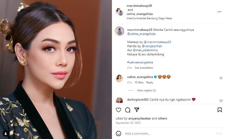 Potrait Celine, Wanita yang diisukan tengah dekat dengan Mayor Teddy. (Instagram @celine_evangelista)