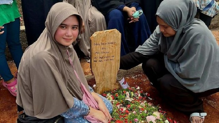 Pada unggahannya yang lain, Tissa mengabadikan berada di samping makam sang ayah. Dia tampak mengenakan hijab dengan wajah sendu. Dia menyampaikan salam terakhir untuk sosok yang paling disayangnya itu.