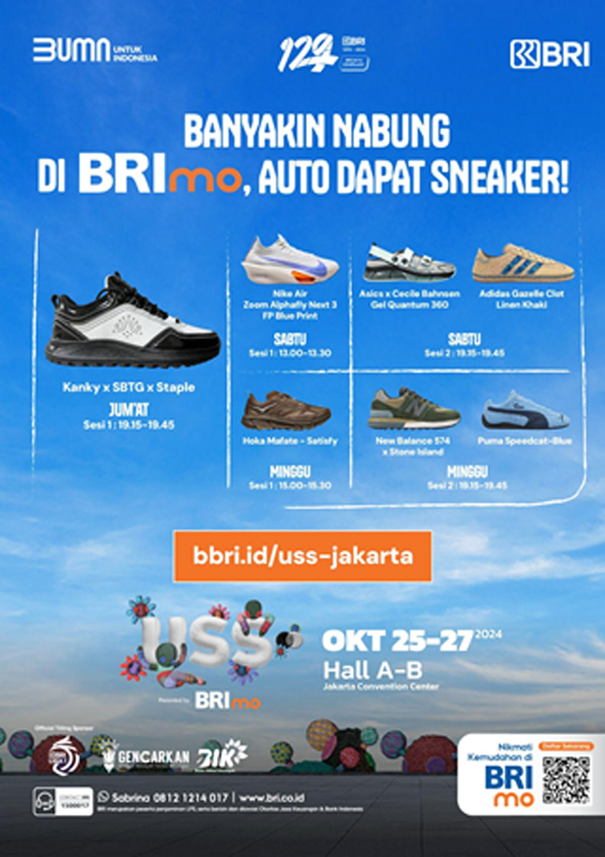 Nah, di USS 2024, program sneakers Rp50 ribu yang dipersembahkan oleh BRImo bakal balik lagi! Program ini tentunya menarik banget buat kalian yang lagi mau hemat tapi tetap dapat sneakers kece.