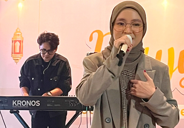 MANGGUNG: Nissa dan Ayus Sabyan mengisi sebuah acara di Tebet, Jakarta Selatan, Jumat (2/12). (Shafa Nadia/Jawa Pos)