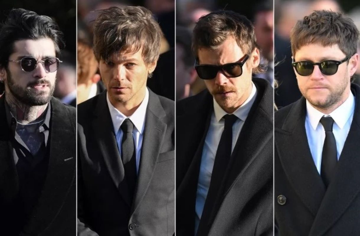 Zayn Malik, Louis Tomlinson, Harry Styles, dan Niall Horan, saat menghadiri pemakaman Liam Payne. (People)