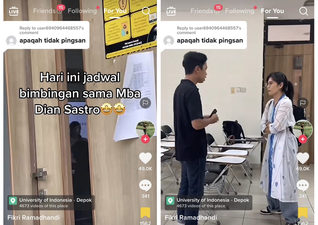 "Bimbingan sama Dosen Pembimbing aku mba Dian Sastro," terang akun TikTok tersebut.