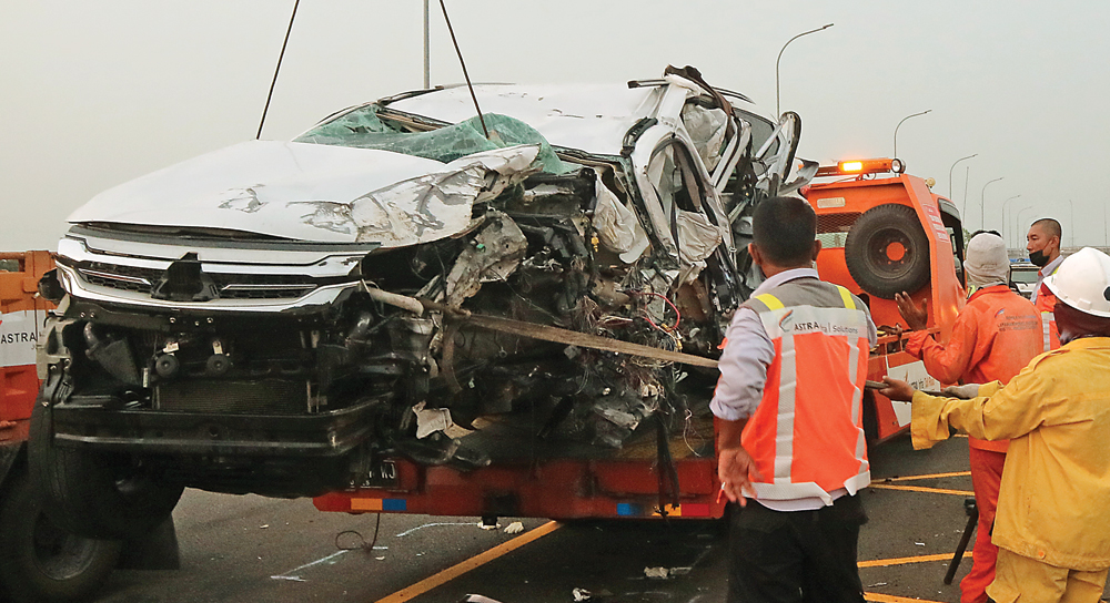 Hal tersebut bisa dianalisis dari kondisi kerusakan kendaraan yang cukup parah, khususnya pada bagian kiri. Kaca jendela pecah. Bodi mobil ringsek. ”Kecepatan melebihi batas, dilihat dari kerusakan kendaraan. Airbag juga sudah mengembang, tetapi korban tidak tertolong,” katanya.