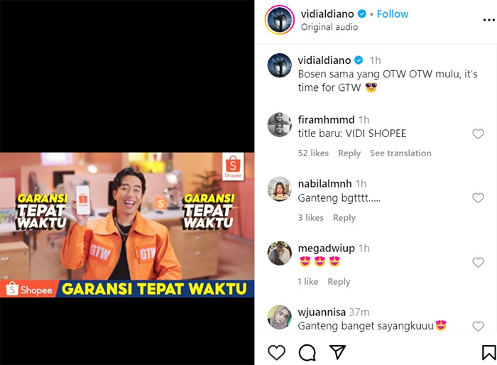 “Bosen sama yang OTW OTW mulu, it’s time for GTW,” tulis Vidi Aldiano di kolom caption akun Instagramnya @vidialdiano.