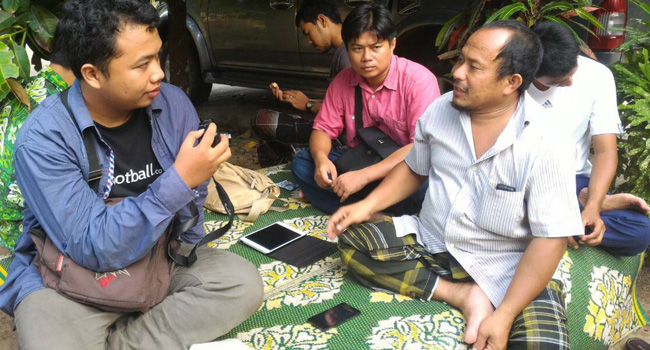 Wartawan Jawa Pos Aqwam Fiazmi Hanifan (kiri) mewawancari Chikmud Madman di Narathiwat (3/9).