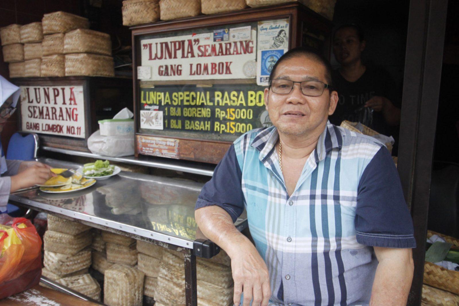 Untung Usodo, pengelola kedai lunpia Gang Lombok. Sabrina/Jawa Pos
