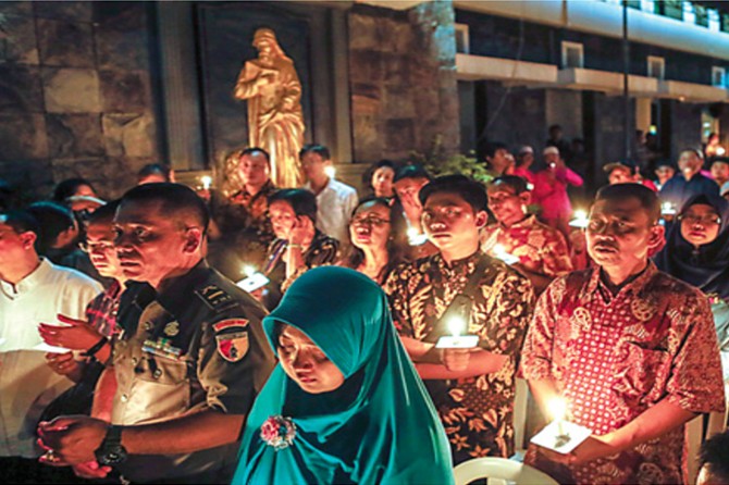 Satu tahun lalu Surabaya diselimuti duka. Bom bunuh diri terjadi di tiga gereja di Surabaya dan mapolrestabes. Banyak korban luka hingga meninggal. Para umat lintas agama memperingati peristiwa tersebut dengan berdoa bersama di Gereja Katolik Santa Maria Tak Bercela (SMTB).