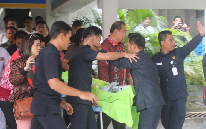 EMANUEL LIU/KALTENG POS DIEVAKUASI: Adian Napitupulu saat dievakuasi ke RSUD dr Doris Sylvanus Palangka Raya, Kalteng, Kamis (19/12).