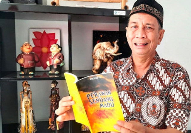 GURU TEMBANG: Poedianto memanfaatkan waktu senggang untuk mengarang lagu Jawa. Cara itu sekaligus digunakan untuk mengajarkan bahasa Jawa. (Galih Adi Prasetyo/Jawa Pos)