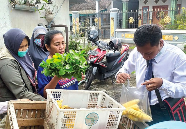 Meski berprofesi bakul mlijo alias pedagang sayur keliling, Yasep Rahmat Wahyudi tak mau mati gaya. Setiap kali ”dinas”, dia selalu mengenakan busana ala pegawai kantoran, lengkap dengan dasinya.