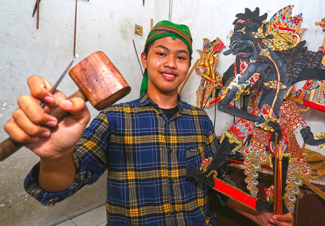 Tangan terampil Ahmad Maiyo Satria Tama sudah terasah. Memukul dan memainkan alat pahat di atas lembaran kulit layaknya menulis saja. Rupa wayang hingga motif yang menghiasi seluruh badan itu dihafal sejak dia masih duduk di bangku sekolah dasar. Kecintaan terhadap budaya Jawa tersebut memotivasinya menjadi seorang perajin wayang.