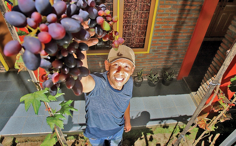 Dia juga sangat memperhatikan media tanam. Di rumah Caca, kelembapan udara cukup tinggi. Karena itu, anggur yang ditanam dalam planter bag tidak diberi tanah. ”Cepat keras,” ujarnya.