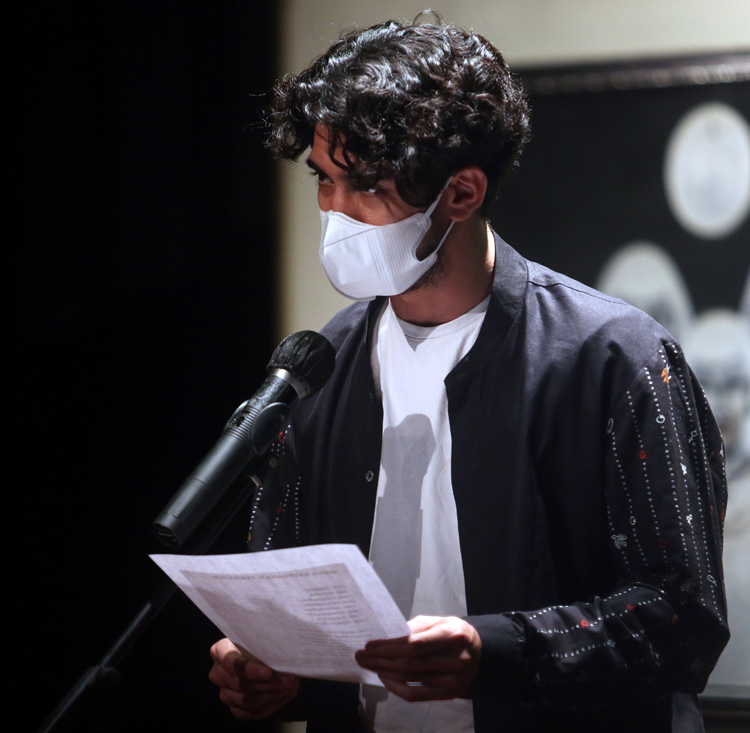 Reza Rahadian membacakan salah satu puisi karya Remy. (HARITSAH ALMUDATSIR/JAWA POS)
