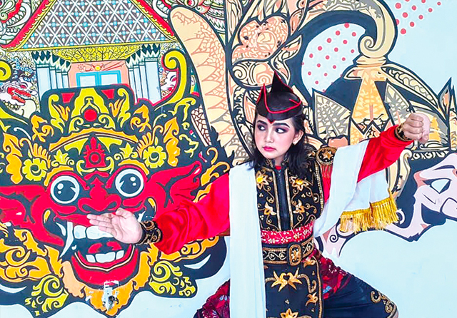 OLAH TALENTA: Trista Mufidah Aruji mengenakan kostum penari remo. Bakar menari menjadikannya dipercaya sebagai pengajar. (Trista untuk Jawa Pos)