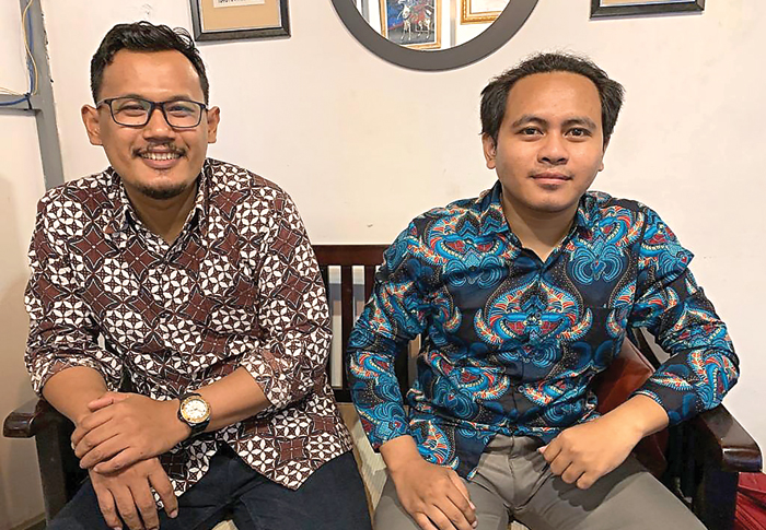 BANTU WARGA: Ilham Yuli Isdianto (kiri) dan Puthut Syahfarudin di Desa Panggungharjo, Bantul. (ILHAM WANCOKO/JAWA POS)