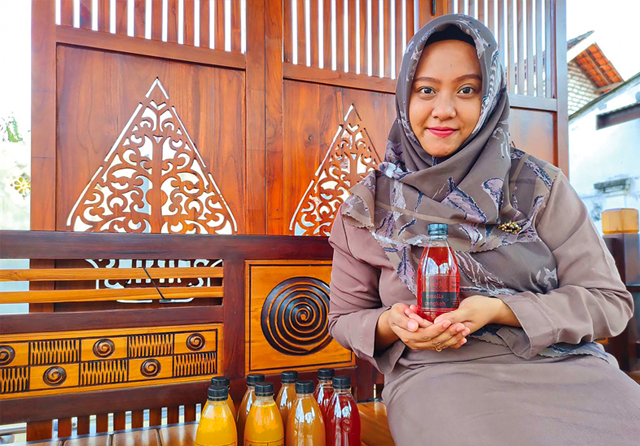 BAHAN LOKAL: Heni Adhianata memamerkan minuman olahannya, salah satu hasil penelitian dengan bahan yang mudah didapatkan. (Heni Adhianata untuk Jawa Pos)
