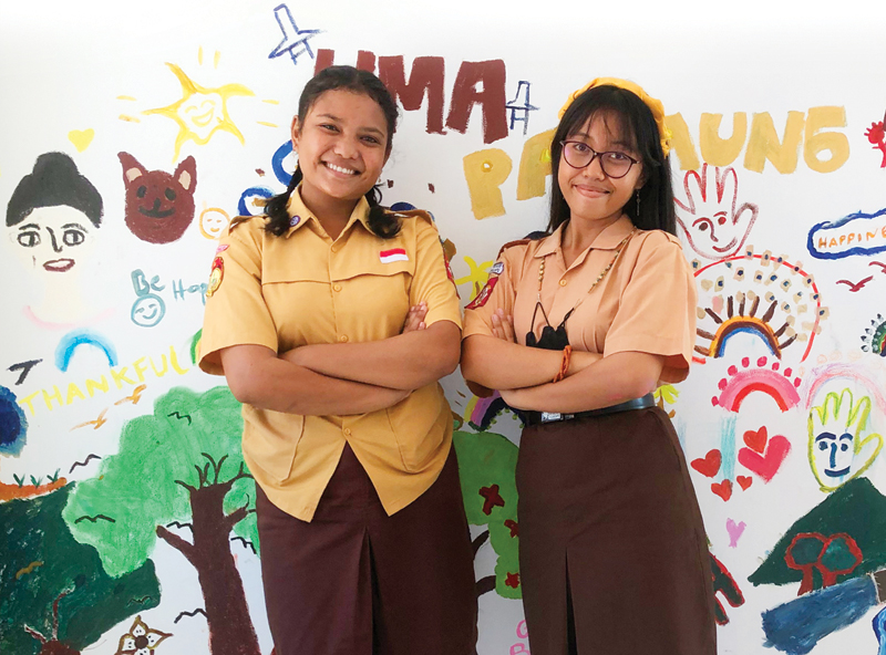 KRITIS BERSUARA: Roslinda (kiri) dan Grace, ketua Forum Anak Sumba Timur, di Rumah Aman Sumba Timur (9/9). (FERLYNDA PUTRI/JAWA POS)