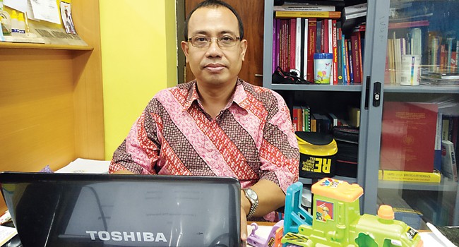 PAKAR BAHASA: Luita Aribowo saat ditemui di ruang dosen sastra Indonesia FIB Universitas Airlangga Surabaya.