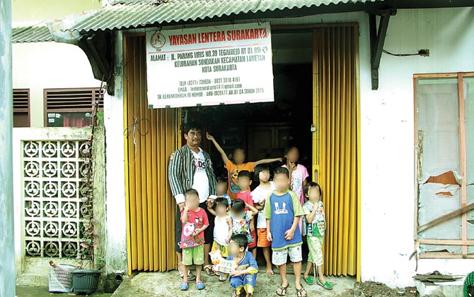 BERHATI MULIA: Puger Mulyono bersama anak-anak dengan HIV/AIDS yang diasuhnya. Puger tak sampai hati membiarkan anak-anak itu telantar.